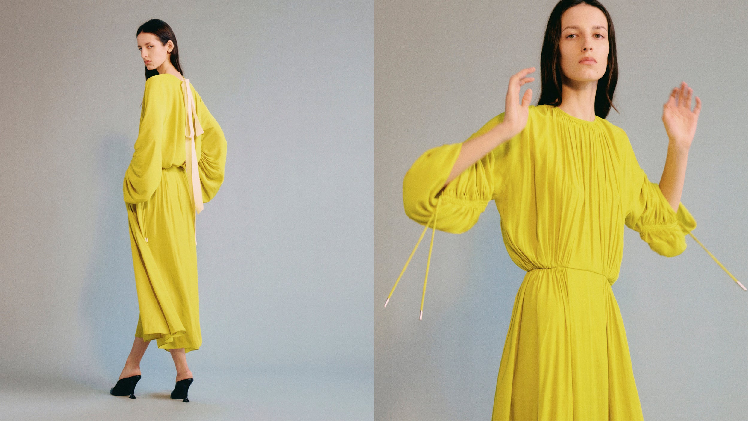 Pour le Printemps 2026, des teintes d’absinthe lumineuses infusent des formes fluides dans une sophistication naturelle.